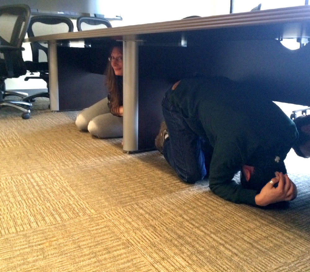 At 10:20 am, on a signal from reception, all Temec personnel in the Burnaby office dropped, crawled under tables or desks and held on for sixty seconds before proceeding to the muster point.